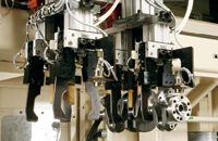 机内搬运装载机(双臂机械手) 机内搬运机械手负责曲轴在各工位间的搬运工作。 由于采用了双臂机械手,大大提高了搬运速度。