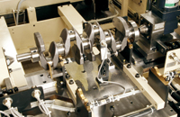 经过修正・吹气清洁工序的曲轴被放置到测量装置上进行平衡的再测量来判定OK /NG。